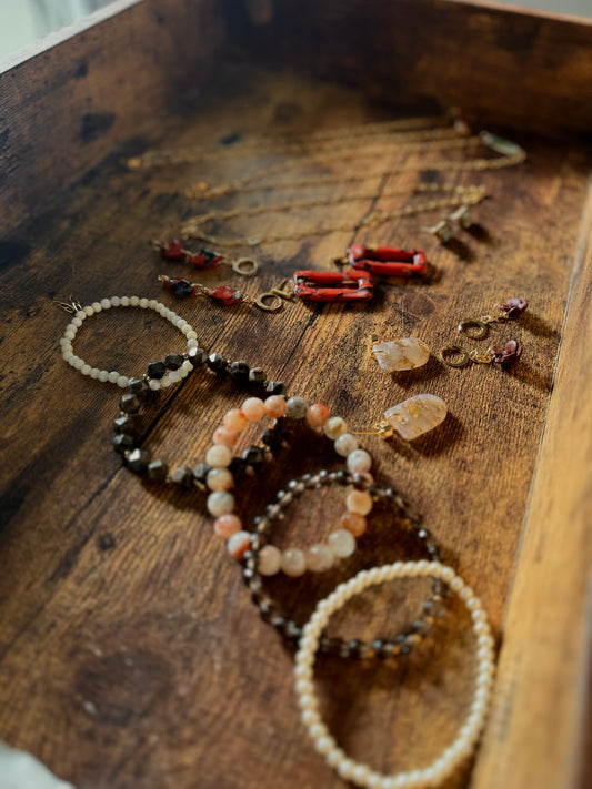 Shop Gold & Peach Co's collection of beaded and chain bracelets.